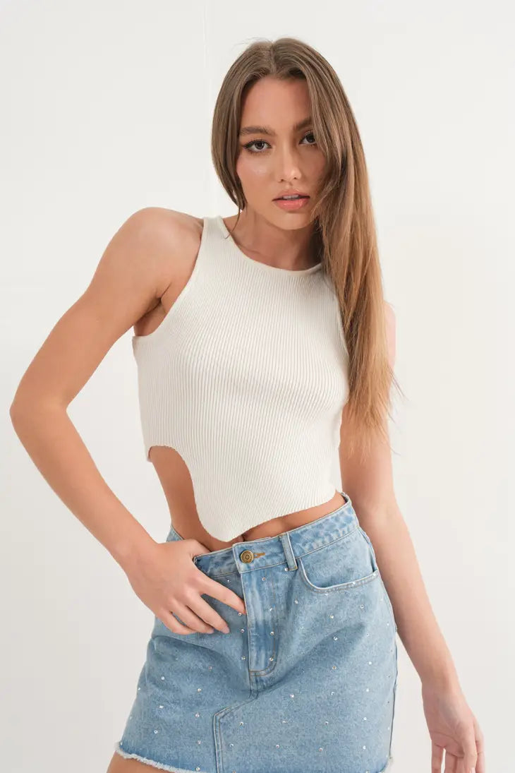 - This asymmetrical tank is adding a twist to the essential closet staple